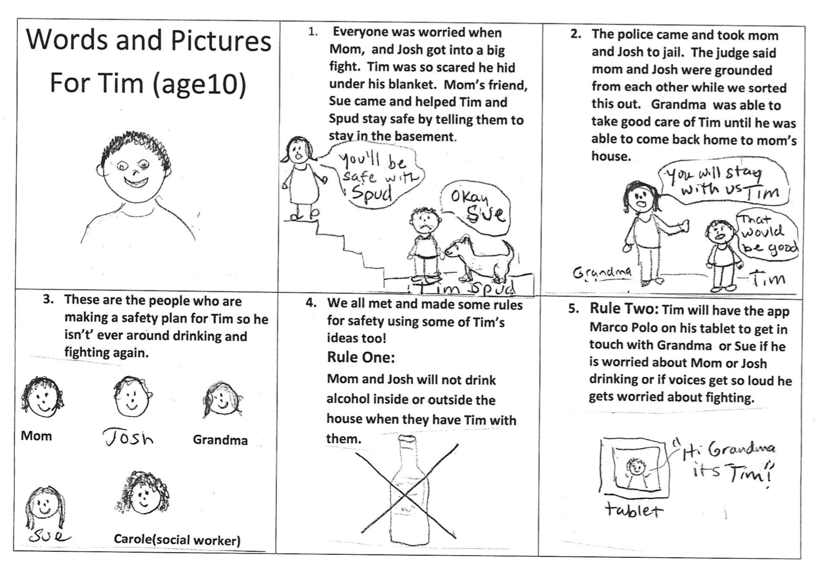 Words and Picture Stories are used to tell children what is being done to keep them safe.